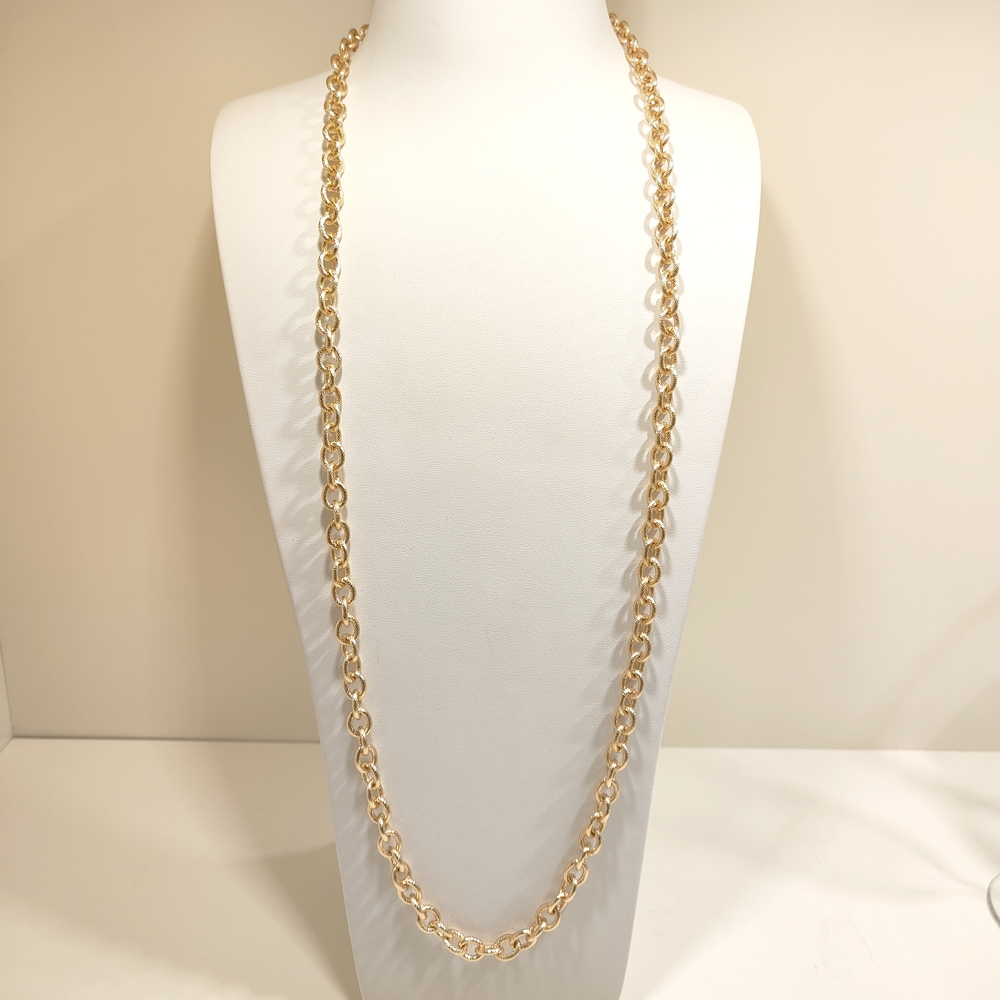 Collana in bronzo dorato. Maglia rolò diamantata. Lunghezza cm. 90.